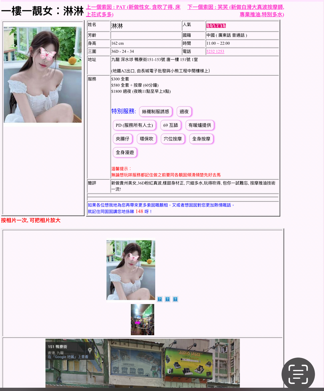 有冇師兄是過深水埗福華街小琴?不過見到佢之前地址係鴨寮街,唔知係咪同一個人叫淋淋. 睇相好似幾正
